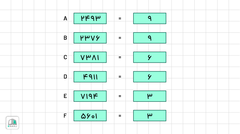 شکل زیر را به دقت نگاه کنید. به نظر شما به جای A، B، C و D چه عددی را باید بگذاریم.
