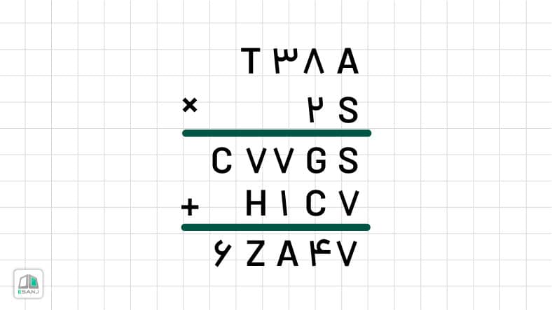 به جای حروف چه اعدادی باید قرار دهیم تا نتیجه ضرب و جمع درست از آب درآید؟👇🏻👇🏻👇🏻
