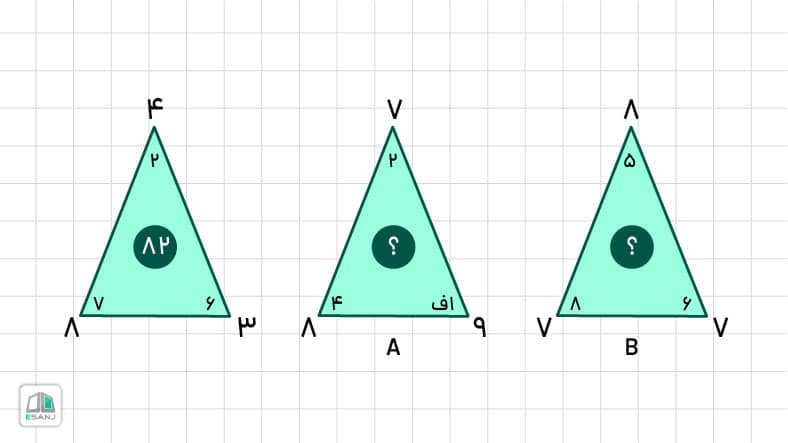 با کشف نظم خاص بین اعداد موجود در روی مثلث های زیر، بگویید که به جای علامت سوال ها چه اعدادی را باید جایگزین کرد؟ 👇🏻👇🏻👇🏻